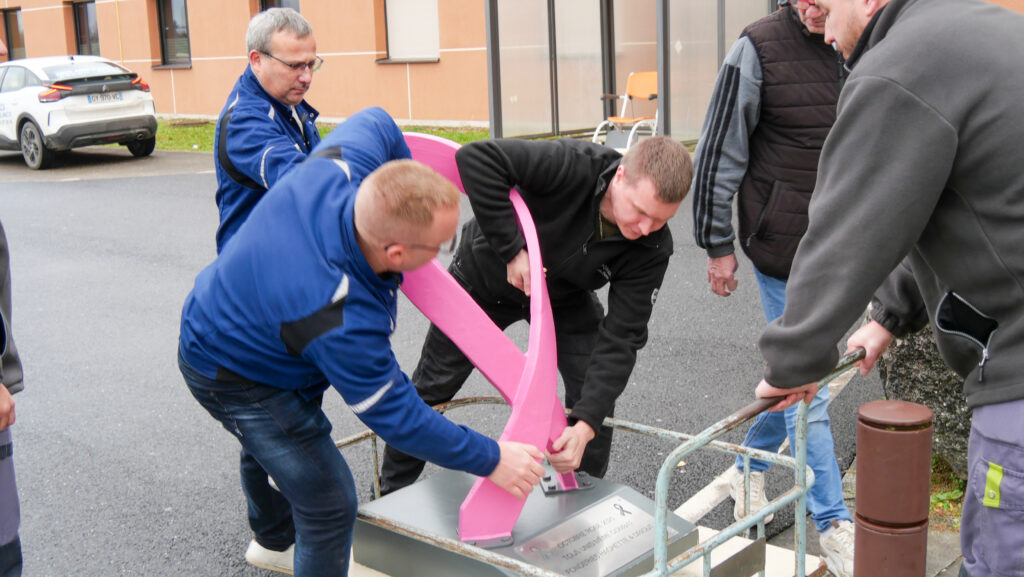 Les équipes des Fonderies Hachette et Driout ont mobilisé tout leur savoir-faire pour donner vie à un projet symbolique : une pièce en acier représentant le ruban d’Octobre Rose, réalisée grâce à des techniques traditionnelles de modelage et à l’expertise unique de ses collaborateurs.