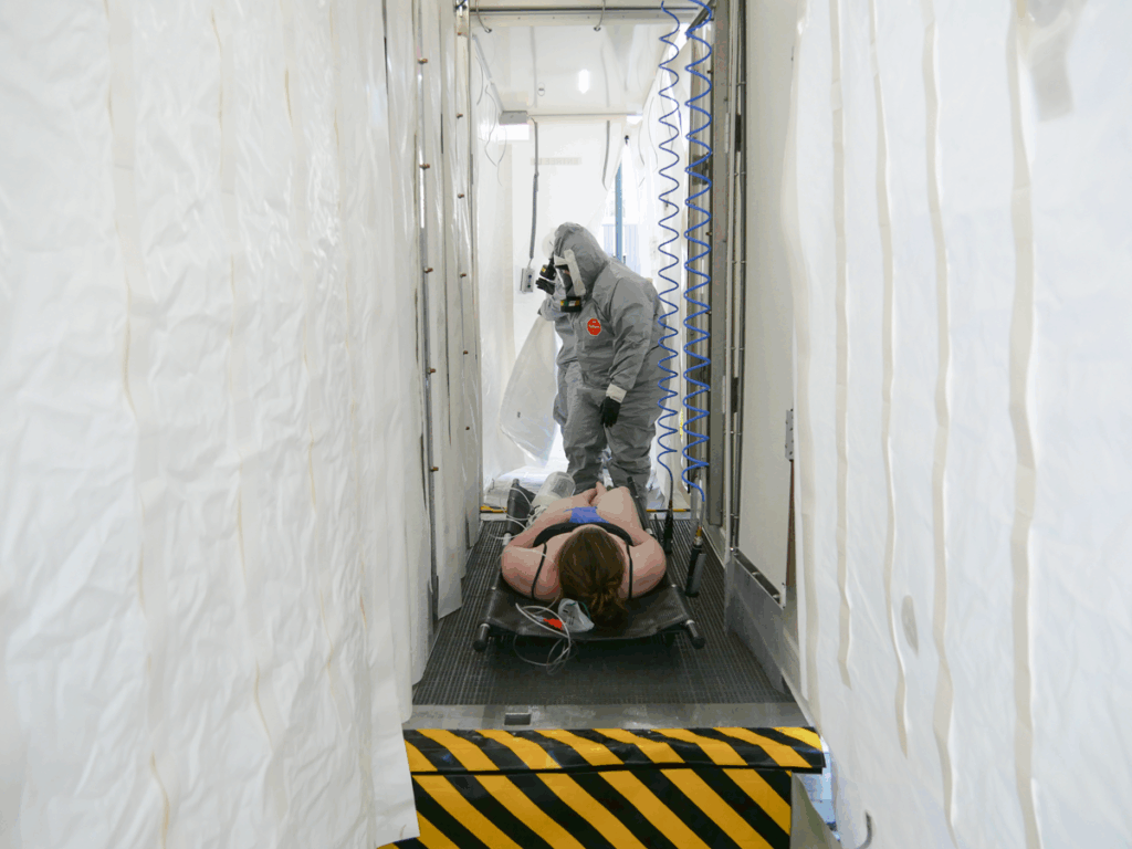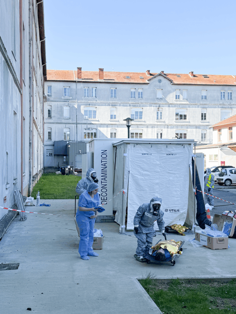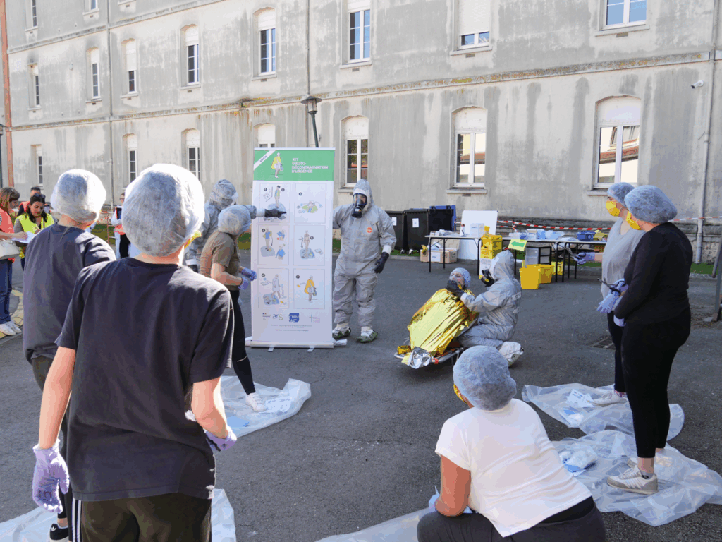 L’ARS Grand Est, l’équipe NRC du CHRU de Nancy, les équipes SMUR du Centre Hospitalier de Bar-le-Duc Fains-Véel ainsi que le SDIS55 ont suivi de près la mise en œuvre du Déconcube, afin d’observer et de s’inspirer des procédures déployées.