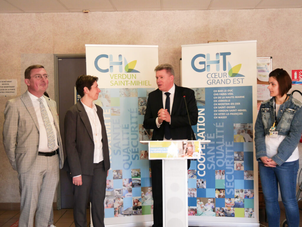 Pour marquer l’occasion, résidents, familles et professionnels étaient réunis aux côtés de M. Scherrer, Directeur Général du GHTCoeurGrandEst, M. Samuel Hazard, Président du conseil de surveillance, M. Jérôme Dumont, Président du conseil départemental et Mme Prins, déléguée territoriale de la Meuse de l’Agence Régionale de Santé Grand Est.