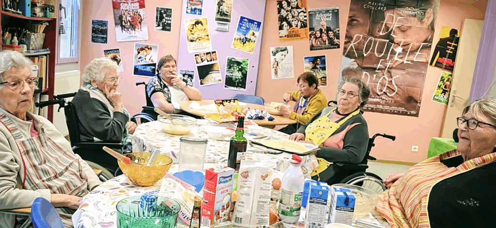 La fête s’est ensuite poursuivie autour de la galette des rois. La veille, les résidents avaient préparé, lors d’un atelier pâtisserie, une dizaine de galettes faites maison, proposées en textures fines ou moulinées et accompagnées de crèmes maison, afin que chacun puisse en profiter selon ses besoins.
